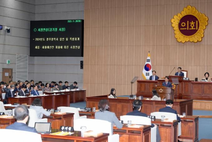 [È£³²´º½º¶óÀÎ = ¼ÀºÈ« ±âÀÚ] °±âÁ¤ ±¤ÁÖ±¤¿ª½ÃÀåÀº 28ÀÏ ¡®2024³â ¿¹»ê¾È¡¯ ½ÃÁ¤¿¬¼³¿¡¼ ¡°2024³â ¹Î»ýȸº¹°ú ±¤ÁÖµµ¾àÀ» À§ÇÑ ¿¹»ê¾ÈÀ» ¿À´Ã Á¦ÃâÇß´Ù¡±¸ç ¡°ÀÌ ¿¹»ê¾ÈÀº ±¤Áֽð¡ Á¦¾ÈÇÏ´Â À§±â±Øº¹ Àü·«¡±À̶ó°í ¹àÇû´Ù.