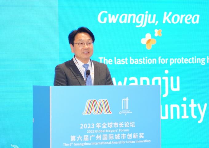 °±âÁ¤ ½ÃÀåÀº 9ÀÏ Áß±¹ ±¤Àú¿ì ¿ù¼ö±¹Á¦ÄÁº¥¼Ç¼¾ÅÍ¿¡¼ ¿¸° ¡®Á¦3ȸ ¼¼°è½ÃÀåÆ÷·³¡¯¿¡ Âü¼®ÇØ ¡®±¤ÁÖ´Ù¿ò ÅëÇÕµ¹º½¡¯ Á¤Ã¥À» ÁÖÁ¦·Î ±âÁ¶¿¬¼³¿¡ ³ª¼ ±¤ÁÖ¸¸ÀÇ µ¹º½Á¤Ã¥ µµÀÔ ¹è°æ°ú 5¡¤18¹ÎÁÖȿ¿¡ »Ñ¸®¸¦ µÐ ¹ÎÁÖµµ½Ã ±¤ÁÖÀÇ Æ÷¿ë¼ºÀ» ¾Ë·È´Ù.