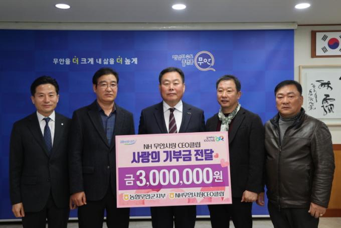 [È£³²´º½º¶óÀÎ = ¼ÀºÈ« ±âÀÚ] ¹«¾È±º(±º¼ö ±è»ê)Àº Áö³ 12ÀÏ NH¹«¾È»ç¶û CEOŬ·´(ȸÀå ±èÇüµµ)°ú NH³óÇù ¹«¾È±ºÁöºÎ(ÁöºÎÀå ±èÇØÁ¾)·ÎºÎÅÍ »ç¶ûÀÇ ±âºÎ±Ý 300¸¸ ¿øÀ» ±âŹ¹Þ¾Ò´Ù°í ¹àÇû´Ù.