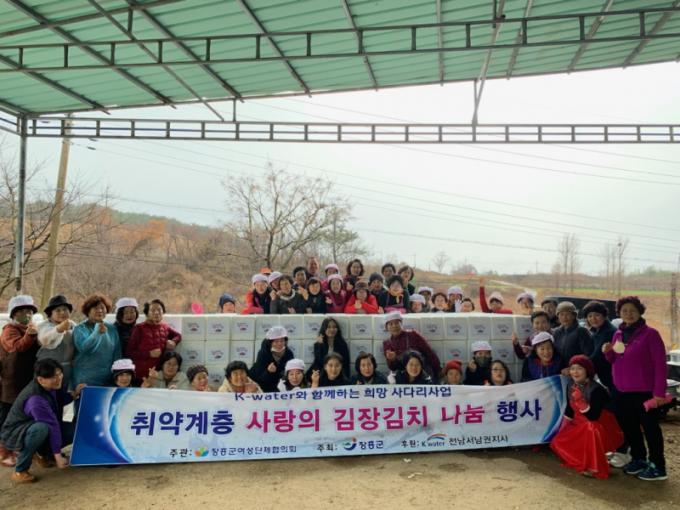 À̳¯ Çà»ç¿¡´Â 11°³ ÀåÈﱺ¿©¼º´Üü ȸ¿ø µî 50¸íÀÌ Âü¼®Çß´Ù. Âü¼®ÀÚµéÀº 1000Æ÷±âÀÇ ±èÀåÀ» ´ã°¡ °ü³» ÇѺθð ¹× Á¶¼Õ°¡Á¤ µî Ãë¾à°èÃþ 370¿©¼¼´ë¿¡ ±èÀå±èÄ¡ 1¹Ú½º¿Í ½Ò (10kg) 1Æ÷´ë¾¿ Àü´ÞÇß´Ù.