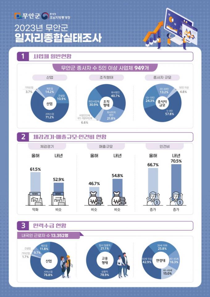 [È£³²´º½º¶óÀÎ = ¼ÀºÈ« ±âÀÚ] ¹«¾È±º(±º¼ö ±è»ê)Àº Áö³ 7¿ù 28ÀϺÎÅÍ 8¿ù 17ÀϱîÁö ¡®2023³â ¹«¾È±º ÀÏÀÚ¸®Á¾ÇÕ½ÇÅÂÁ¶»ç¡¯¸¦ ½Ç½ÃÇϰí, 12¿ù 21ÀÏ ±× °á°ú¸¦ °øÇ¥Çß´Ù.