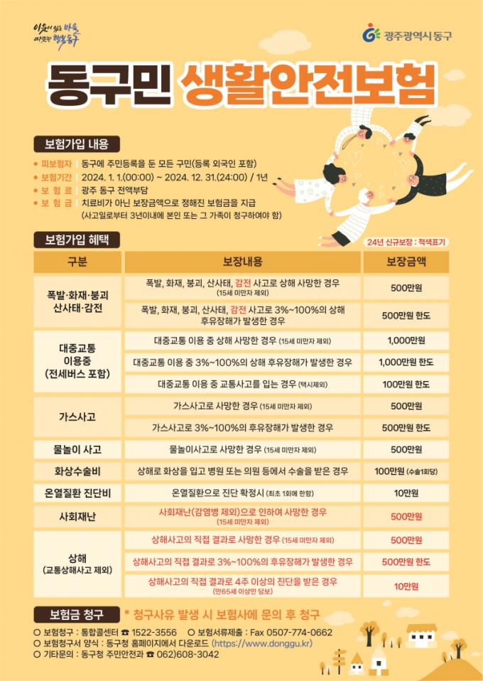 ¡®µ¿±¸¹Î »ýȰ¾ÈÀüº¸Ç衯Àº ÀÏ»ó»ýȰ¿¡¼ ¿¹±âÄ¡ ¾Ê°Ô ÀϾ ¼ö ÀÖ´Â °¢Á¾ Àç³°ú »ç°í·ÎºÎÅÍ ÀÎÀû »ç°í ÇÇÇØ¸¦ ÀÔÀº ÁÖ¹ÎÀÇ Á¶¼ÓÇÑ »ýȰ ¾ÈÁ¤À» À§ÇØ ¿î¿µ ÁßÀÌ´Ù. °¡ÀÔ ´ë»óÀº µî·Ï¿Ü±¹ÀÎÀ» Æ÷ÇÔÇØ µ¿±¸¿¡ Áֹεî·ÏÀ» µÐ ¸ðµç ÁÖ¹ÎÀ¸·Î º°µµ ÀýÂ÷ ¾øÀÌ ÀüÀÔ¡¤ÀüÃ⠽à ÀÚµ¿À¸·Î °¡ÀÔ¡¤Å»Åð 󸮵ȴÙ.
