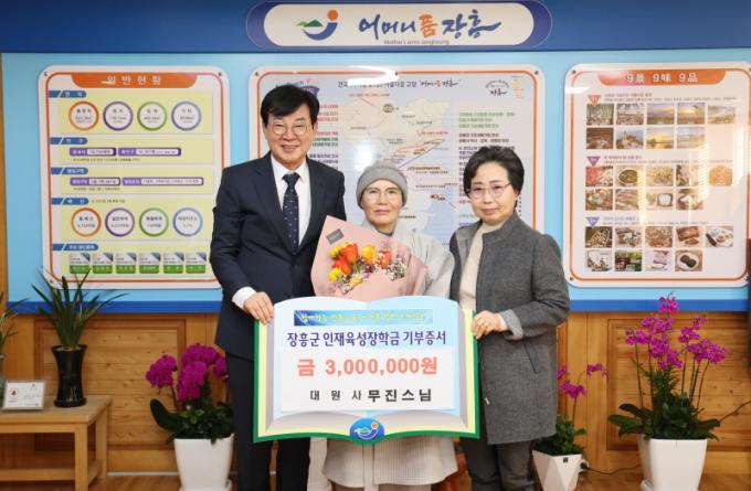 ±âŹ¿¡ ³ª¼± ¹«Áø ½º´ÔÀº ¡°Áö¿ª»çȸÀÇ ¼±Çà°ú ³ª´®¹®È È®»ê¿¡ ÀÛÀº º¸ÅÆÀÌ µÇ°íÀÚ ÀåÇбÝÀ» ±âŹÇÏ°Ô µÆ´Ù¡±¸ç ¡°¿¬ÃÊ ÀÛÀº ¿òÁ÷ÀÓµéÀÌ Áö¿ª»çȸ¿¡ ¼±ÇÑ ¿µÇâ·ÂÀ» ³¢Ä¡´Â °è±â°¡ µÇ±æ ¹Ù¶õ´Ù¡±°í ¸»Çß´Ù.