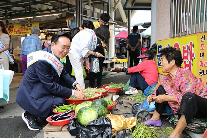 »çÁø¼³¸í : À±º´Å ½ÃÀåÀÌ Áö³ÇØ Ãß¼® ¸íÀý Àü ³ªÁÖ¸ñ»ç°íÀ»½ÃÀå¿¡¼ ÀüÅë½ÃÀå À庸±â Çà»ç¿¡ Âü¿©ÇØ »óÀÎÀ» °Ý·ÁÇϰí ÀÖ´Ù.