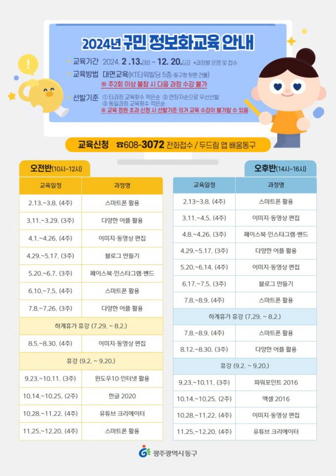 [È£³²´º½º¶óÀÎ = ¼ÀºÈ« ±âÀÚ] ±¤Áֽà µ¿±¸(ûÀå ÀÓÅÃ)´Â µðÁöÅÐ ¼Ò¿Ü°èÃþÀÇ Á¤º¸°ÝÂ÷ ÇØ¼Ò¿Í ÀÏ»ó ¼Ó ÁֹΠµðÁöÅРȰ¿ë ´É·Â Çâ»óÀ» À§ÇÑ ¡®2024³â ±¸¹Î Á¤º¸È ±³½Ç¡¯À» ¿À´Â 13ÀϺÎÅÍ ¿¬Áß ½Ç½ÃÇÑ´Ù°í ¹àÇû´Ù.