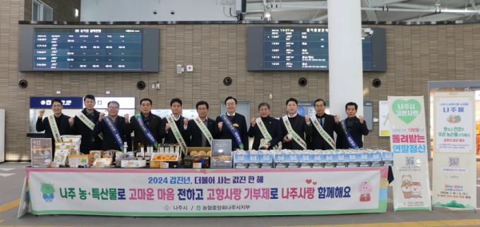 [È£³²´º½º¶óÀÎ = ¼ÀºÈ« ±âÀÚ] ³ªÁÖ½Ã(½ÃÀå À±º´ÅÂ)´Â 8ÀÏ ¼³ ¸íÀýÀ» ¾ÕµÎ°í ³ªÁÖ¿ª¿¡¼ Áö¿ª ´ëÇ¥ ³ó․Ư»ê¹°°ú °íÇâ»ç¶û±âºÎÁ¦ È«º¸È°µ¿À» ÆîÃÆ´Ù°í ¹àÇû´Ù.