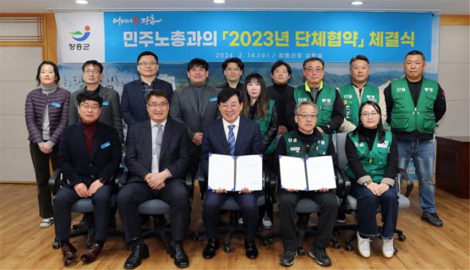ÀåÈﱺ°ú ³ëµ¿Á¶ÇÕÀº 2023³â 4¿ùºÎÅÍ ¿ÃÇØ 1¿ù±îÁö ÃÑ 12Â÷·ÊÀÇ ±³¼·À» ÅëÇØ »óÈ£ ½Å·Ú¸¦ ¹ÙÅÁÀ¸·Î ¾çº¸ÇÔÀ¸·Î½á ¿ø¸¸ÇÏ°Ô ÇÕÀÇÁ¡À» ã¾Ò´Ù. Çù¾àÀº À¯±Þ±Ù·Î½Ã°£ ¸éÁ¦, ¹®ÈüÀ°Çà»ç Áö¿ø, Ưº°ÈÞ°¡ ½Å¼³ µî ³ëµ¿ ±âº»±Ç º¸Àå ¹× Á¶ÇÕ¿øÀÇ ±ÇÀͽÅÀå ºÎºÐÀ» ¹Ý¿µÇÏ¿© ü°áµÇ¾ú´Ù.