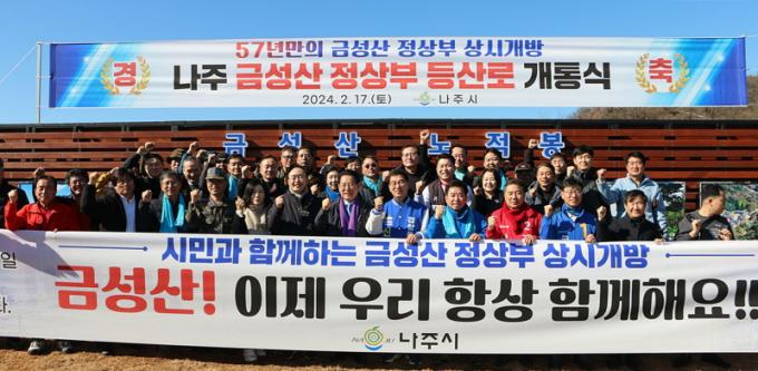 ³ªÁÖ½Ã(½ÃÀå À±º´ÅÂ)´Â 17ÀÏ ¿ÀÀü 11½Ã ±Ý¼º»ê Á¤»óºÎ µî»ê·Î °³Åë½ÄÀ» °¡Á³´Ù°í ¹àÇû´Ù. À̳¯ °³Åë½ÄÀº 10½Ã 20ºÐ Áß°£ Áý°áÁöÀÎ ³«Å¸ºÀ¿¡¼ ³ëÀûºÀ Á¤»óÀ¸·Î ÇÔ²² °È´Â Çà»ç·Î ½ÃÀ۵ƴÙ. ÇÔ²² °È±â¿£ 57³â ¸¸¿¡ »ê Á¤»óºÎ »ó½Ã °³¹æÀ» ÃàÇÏÇϰíÀÚ ÁÖ¸» ¾ÆÄ§ µî»ê¿¡ ³ª¼± ½Ã¹Î 500¿©¸íÀÌ ÇÔ²²Çß´Ù.