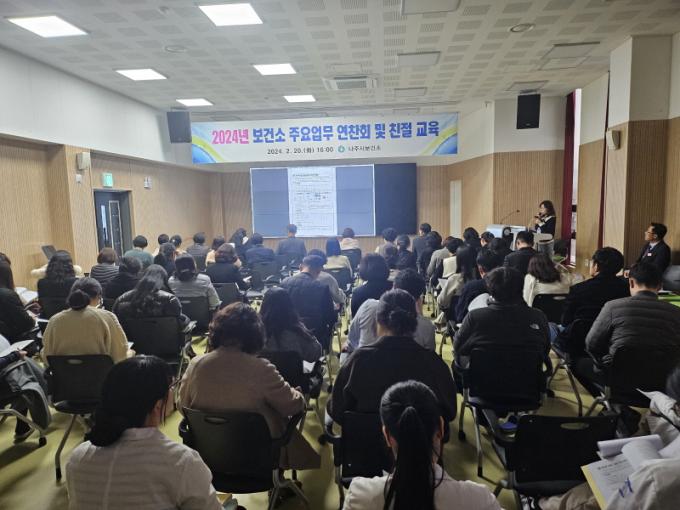 [È£³²´º½º¶óÀÎ = ¼ÀºÈ« ±âÀÚ] ³ªÁֽú¸°Ç¼Ò°¡ º¸°Ç¼Ò ȸÀǽǿ¡¼ Àü Á÷¿øµéÀ» ´ë»óÀ¸·Î ¡®2024³â º¸°Ç¼Ò ÁÖ¿ä»ç¾÷ ¼³¸íȸ¡¯¸¦ °³ÃÖÇß´Ù.