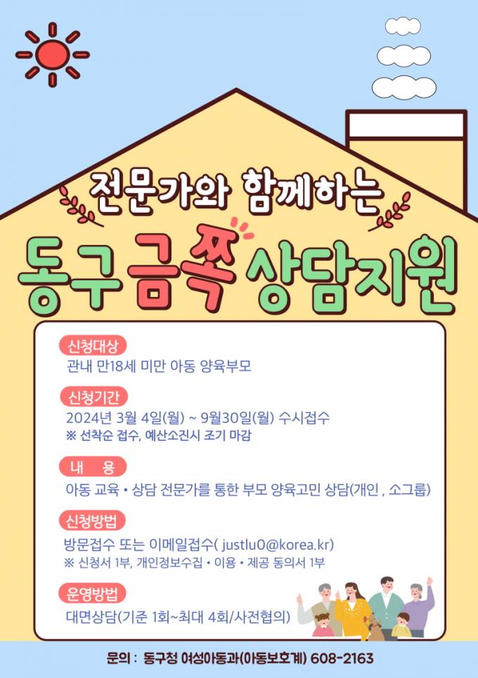 ½Åû ´ë»óÀº µ¿±¸ °ü³» 18¼¼ ÀÌÇÏ ¾Æµ¿À» ¾çÀ°Çϰí ÀÖ´Â ºÎ¸ð¿Í º¸È£ÀÚ·Î ¾çÀ°¿¡ ¾î·Á¿òÀ» °Þ°í ÀÖ´Â ´©±¸³ª ½Åû °¡´ÉÇÏ´Ù. ½Åû ±â°£Àº ¿À´Â 3¿ùºÎÅÍ 9¿ù±îÁö ¼±Âø¼ø ¼ö½Ã Á¢¼ö·Î µ¿±¸Ã» ´©¸®ÁýÀ» ÂüÁ¶ÇØ ½Åû¼¿Í ±¸ºñ ¼·ù¸¦ ÀÛ¼ºÇÑ ÈÄ ¿©¼º¾Æµ¿°ú ¾Æµ¿º¸È£°è·Î ¹æ¹® ¶Ç´Â À̸ÞÀÏ(justlu0@korea.kr)·Î Á¢¼öÇÏ¸é µÈ´Ù.