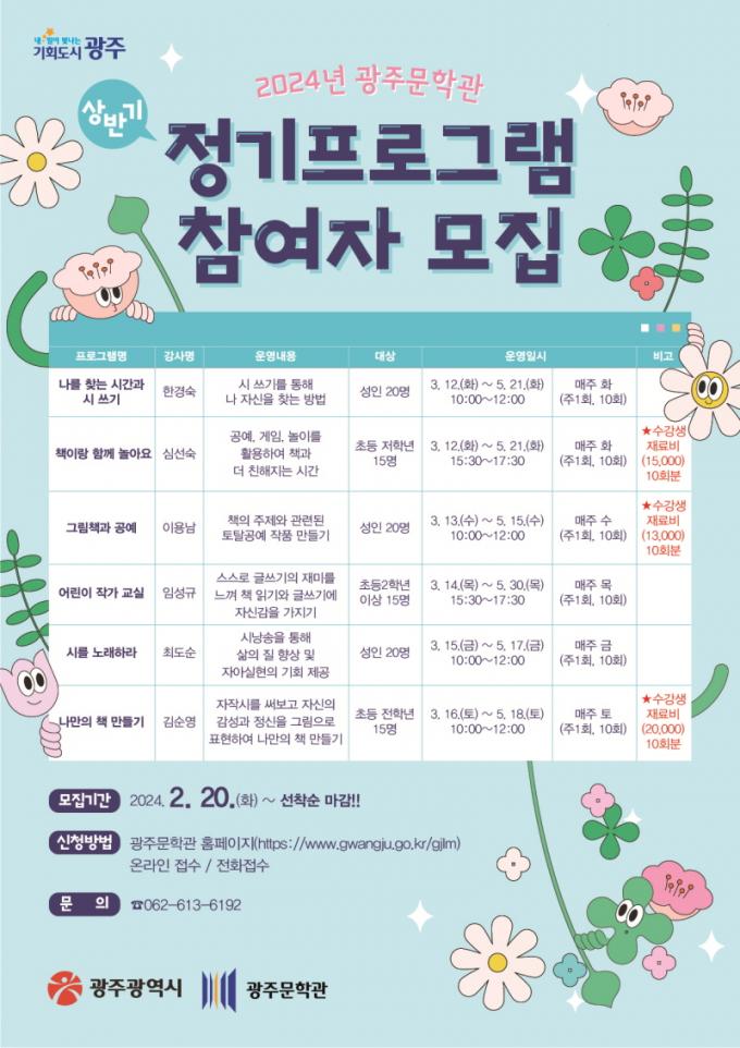 [È£³²´º½º¶óÀÎ = ¼ÀºÈ« ±âÀÚ] ±¤ÁÖ¹®ÇаüÀÌ ¿À´Â 3¿ùºÎÅÍ ½ÃÀÛÇÏ´Â »ó¹Ý±â Á¤±â ÇÁ·Î±×·¥ ¼ö°»ýÀ» ¸ðÁýÇÑ´Ù. ÀÏ¹Ý ½Ã¹Î °Á´ ½Ã âÀÛ, ±×¸²Ã¥°ú °ø¿¹, ½Ã³¶¼Û ÇÁ·Î±×·¥ÀÌ ¿î¿µµÈ´Ù.