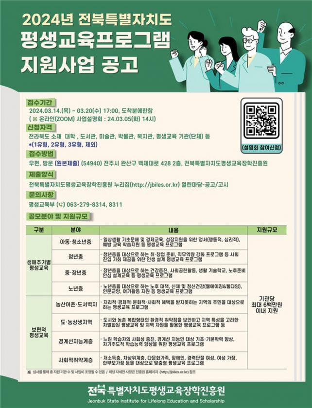 ÀÚ¼¼ÇÑ ³»¿ëÀº ÀüºÏƯº°ÀÚÄ¡µµÆò»ý±³À°ÀåÇÐÁøÈï¿ø(http://www.jbiles.or.kr)°ú ÀüºÏƯº°ÀÚÄ¡µµ, ÀüºÏƯº°ÀÚÄ¡µµ±³À°Ã», ÁöÀÚü(14°³ ½Ã¡¤±º) ȨÆäÀÌÁö¿¡¼ È®ÀÎ °¡´ÉÇϸç, ¹®ÀÇ´Â ÀüºÏƯº°ÀÚÄ¡µµÆò»ý±³À°ÀåÇÐÁøÈï¿ø Æò»ý±³À°ºÎ(063-276-8314, 8311)·Î ÇÏ¸é µÈ´Ù.