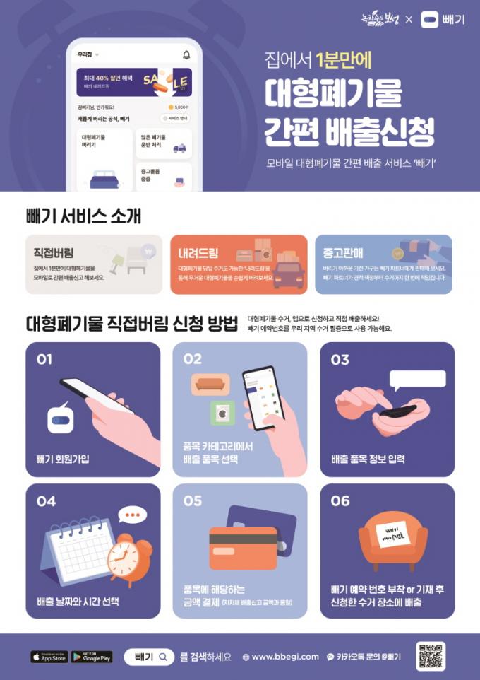 ±×µ¿¾È ´ëÇüÆó±â¹°À» ó¸®ÇÏ·Á¸é À¾¸é ÇàÁ¤º¹Áö¼¾ÅÍ¿¡¼ ´ëÇüÆó±â¹° ½ºÆ¼Ä¿¸¦ ±¸¸ÅÇÑ µÚ Æó±â¹°¿¡ ºÎÂøÇØ ¹èÃâÇØ¾ß ÇÏ´Â ºÒÆíÇÔÀÌ ÀÖ¾ú´Ù. ¿À´Â 3¿ùºÎÅÍ ´ëÇüÆó±â¹° ¿Â¶óÀÎ ¹èÃâ½Ã½ºÅÛ ¡®»©±â¡¯ ¾Û ½ÃÇàÀ¸·Î ´ëÇüÆó±â¹° ¹èÃâ ½Å°í¿¡¼ºÎÅÍ ¼ö¼ö·á °áÁ¦±îÁö ¾ðÁ¦, ¾îµð¼µç 24½Ã°£ ÀÎÅͳÝ(PC, ¸ð¹ÙÀÏ)À¸·Î °£ÆíÇÏ°Ô Ã³¸®ÇÒ ¼ö ÀÖ´Ù.