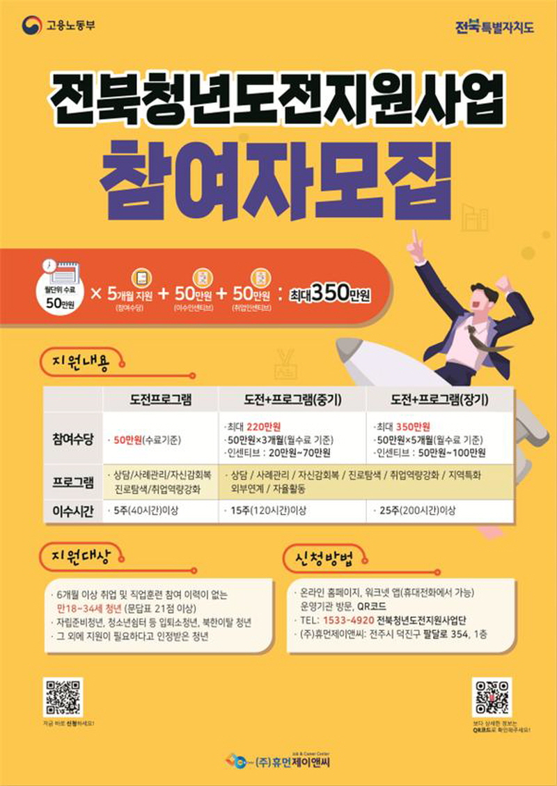 »ç¾÷ Âü¿©¸¦ Èñ¸ÁÇϴ û³âÀº ¿öÅ©³Ý ¶Ç´Â ÀüÈ(ÀüºÏû³âµµÀüÁö¿ø »ç¾÷´Ü 063-272-4920), ºí·Î±×(https://blog.naver.com/humanjnc)¸¦ ÅëÇØ ½ÅûÇÏ¸é µÈ´Ù.