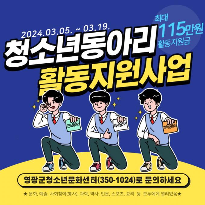 [È£³²´º½º¶óÀÎ = ¼ÀºÈ« ±âÀÚ] ¿µ±¤±º(±º¼ö °Á¾¸¸)Àº 3¿ù 5ÀÏ(È)ºÎÅÍ 17ÀÏ(È)±îÁö ¡¸2024³â ¿µ±¤±º û¼Ò³âµ¿¾Æ¸® Ȱµ¿ Áö¿ø »ç¾÷¡¹¿¡ Âü¿©ÇÒ Ã»¼Ò³âµ¿¾Æ¸®¸¦ ¸ðÁýÇÑ´Ù°í ¹àÇû´Ù.