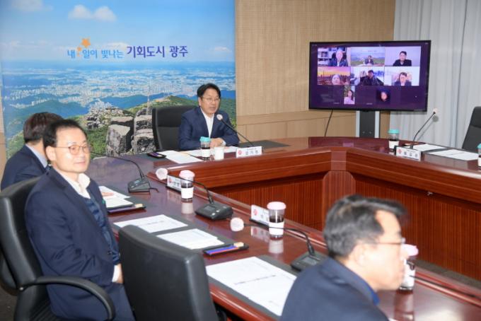 [È£³²´º½º¶óÀÎ = ¼ÀºÈ« ±âÀÚ] °±âÁ¤ ±¤ÁÖ±¤¿ª½ÃÀåÀº 5ÀÏ ¿µ»óȸÀǽǿ¡¼ ÇØ¿Ü µµ½ÃÀÇ ¿ì¼öÁ¤Ã¥À» ¹ß±¼ÇÏ°í ¿¬°è ¹æ¾ÈÀ» ¸ð»öÇϰíÀÚ ¡®ÇØ¿ÜÆÄ°ß °øÁ÷ÀÚ ¿µ»óȸÀÇ¡¯¸¦ ÁÖÀçÇß´Ù.