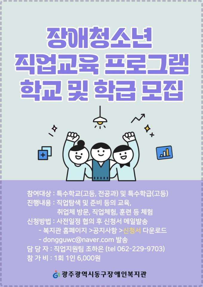[È£³²´º½º¶óÀÎ = ¼ÀºÈ« ±âÀÚ] ±¤ÁÖ±¤¿ª½Ãµ¿±¸Àå¾ÖÀκ¹Áö°ü(°üÀå Àå¼¼Á¾)Àº Áö³ 5ÀϺÎÅÍ Àå¾Öû¼Ò³âÀ» À§ÇÑ Á÷¾÷±³À° ÇÁ·Î±×·¥ÀÇ Âü¿© Çб³ ¹× ÇбÞÀ» ¸ðÁýÇϰí ÀÖ´Ù.