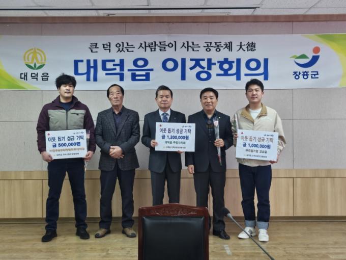´ë´öÀ¾¿¡ µû¸£¸é ž»ê»ç ÁÖÁö½º´ÔÀÌ 200¸¸¿ø, ´ë´öÀ¾ÁÖ¹ÎÀÚġȸ(¼Õ½ÂÇö)¿¡¼ 120¸¸¿ø, ´öÀϽĴç, ȸº¹ÀDZ³È¸, ÇѸ¶À½±³È¸, »êÁ¤¸¶À» ÀÌÀå(¹Ú¼øÇÊ), (ÁÖ)°Ç¼³±â¾÷(°í½Â±æ), ±Ý°½ºÆ¿(À§ÀºÈñ) °¢ 100¸¸¿ø, ³ª´©¸®Àç°¡º¹Áö¼¾ÅÍ(¹Ú¿ë³à), ¢ßõ¿ìMS½ÄÀÚÀ縶Ʈ(±è¿õÁø), ³ë¼÷¿µ(13´ë ´ë´öÀ¾¿©ÀÚÀÇ¿ë¼Ò¹æ´ëÀå)°¢ 50¸¸¿ø µî ÇöÀç±îÁö Áö¿ªÁÖ¹Î,ÀÚ¿µ¾÷ÀÚ,Á¾±³´Üü,±â°ü»çȸ´Üü µî ÃÑ 33¸íÀÌ 2õ 430¸¸¿øÀ» ±âºÎÇß´Ù.´Ù.