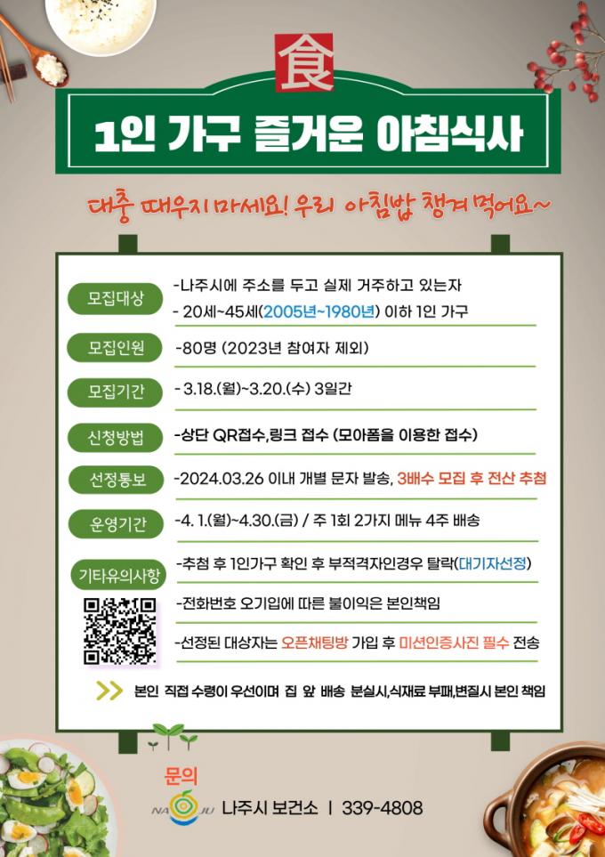 ¡®°£ÆíÇÏ°í °Ç°ÇÑ Çѳ¢ ½Ä»ç¡¯¸¦ ÁÖÁ¦·Î ÁøÇàÇÏ´Â À̹ø ¹ÐŰƮ Áö¿ø»ç¾÷Àº ÁÖ 2ȸ ÃÑ 4ÁÖ¿¡ °ÉÃÄ ¿î¿µµÇ¸ç, 240¸íÀ» ¸ðÁý ÈÄ Àü»ê ÃßÃ·ÇØ ÃÖÁ¾ 80¸íÀ» ¼±¹ßÇÒ ¿¹Á¤ÀÌ´Ù. ¸ðÁý ´ë»óÀº ³ªÁÖ¿¡ ÁÖ¼Ò¸¦ µÎ°í ½ÇÁ¦ °ÅÁÖÇϰí ÀÖ´Â 20~45¼¼ ÀÌÇÏÀÎ 1ÀÎ °¡±¸´Ù.