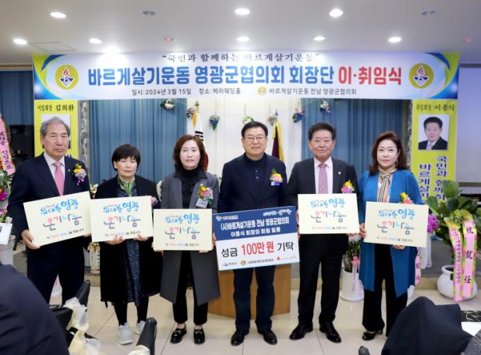 [È£³²´º½º¶óÀÎ = ¼ÀºÈ« ±âÀÚ] (»ç)¹Ù¸£°Ô»ì±â¿îµ¿ Àü³²¿µ±¤±ºÇùÀÇȸ(ȸÀå ÀÌÁ¾½Ä)´Â Áö³ 15ÀÏ ¿µ±¤ Çì¶ó¿þµùȦ¿¡¼ Á¦12~13¡¤14´ë ȸÀå´Ü ÀÌ¡¤ÃëÀÓ½Ä Çà»ç¸¦ °®°í ¿µ±¤±º(±º¼ö °Á¾¸¸)¿¡ ¿Â±â³ª´®Ä·ÆäÀÎ ¼º±Ý 100¸¸ ¿øÀ» ±âŹÇÏ¿´´Ù.