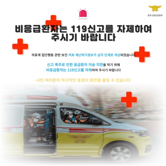 [È£³²´º½º¶óÀÎ = ¼ÀºÈ« ±âÀÚ] ±¤ÁÖ±¤¿ª½Ã¼Ò¹æ¾ÈÀüº»ºÎ´Â ÃÖ±Ù ÀÇ·á°è Áý´ÜÇൿ ½ÉÈ·Î ÀÎÇÑ 119½Å°í ÆøÁÖ¿Í ÀÀ±ÞȯÀÚ ÀÌ¼Û Áö¿¬À» ¸·±â À§ÇØ ºñÀÀ±ÞȯÀÚÀÇ 119½Å°í ÀÚÁ¦¸¦ ´çºÎÇß´Ù.