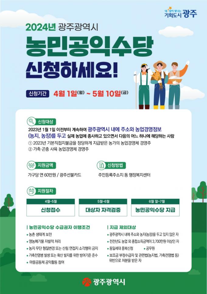 [È£³²´º½º¶óÀÎ = ¼ÀºÈ« ±âÀÚ] ±¤ÁÖ±¤¿ª½Ã(½ÃÀå °±âÁ¤)´Â 4¿ù 1ºÎÅÍ 5¿ù 10ÀϱîÁö ÁÖ¼ÒÁö µ¿ ÇàÁ¤º¹Áö¼¾ÅÍ¿¡¼ ¡®2024³â ³ó¹Î°øÀͼö´ç¡¯À» ½Åû¹Þ´Â´Ù.