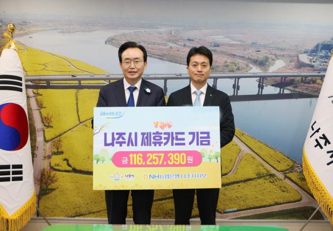 [È£³²´º½º¶óÀÎ = ¼ÀºÈ« ±âÀÚ] ³ªÁÖ½Ã(½ÃÀå À±º´ÅÂ)´Â NH³óÇùÀºÇà ³ªÁÖ½ÃÁöºÎ(ÁöºÎÀå ½Å°æÈÆ)¿Í 2023³âµµ Á¦ÈÞÄ«µå Àû¸³±â±Ý Àü´Þ½ÄÀ» °¡Á³´Ù°í 28ÀÏ ¹àÇû´Ù.