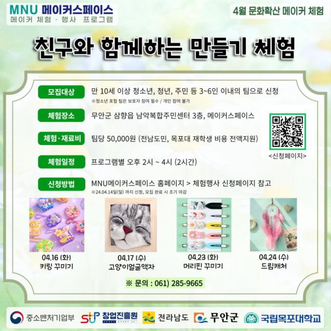 [È£³²´º½º¶óÀÎ = ¼ÀºÈ« ±âÀÚ] ¹«¾È±º(±º¼ö ±è»ê)Àº ±¹¸³¸ñÆ÷´ëÇб³ â¾÷Çõ½Å¼¾ÅÍ(¼¾ÅÍÀå À¯¿µÀç) MNU ¸ÞÀÌÄ¿½ºÆäÀ̽º¿¡¼ ¸ÞÀÌÄ¿ ¹®ÈÈ®»êÀ» À§ÇÑ ÇÁ·Î±×·¥ÀÎ ¡®¸ÞÀÌÄ¿ üÇ衤Çà»ç ÇÁ·Î±×·¥¡¯ Âü¿©ÀÚ¸¦ ¸ðÁýÇÑ´Ù°í ¹àÇû´Ù.