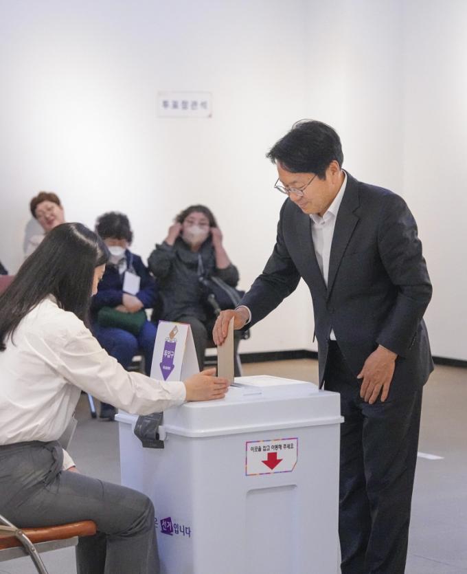 [È£³²´º½º¶óÀÎ = ¼ÀºÈ« ±âÀÚ] °±âÁ¤ ±¤ÁÖ±¤¿ª½ÃÀåÀº Á¦22´ë ±¹È¸ÀÇ¿ø »çÀüÅõÇ¥°¡ ½ÃÀÛµÈ Ã¹³¯ÀÎ 5ÀÏ ¿ÀÈÄ ¼±¸ »ó¹«1µ¿ »çÀüÅõÇ¥¼Ò ±¤ÁÖÇлý±³À°¹®Èȸ°üÀ» ã¾Æ ¼ÒÁßÇÑ ÇÑÇ¥¸¦ Çà»çÇß´Ù.