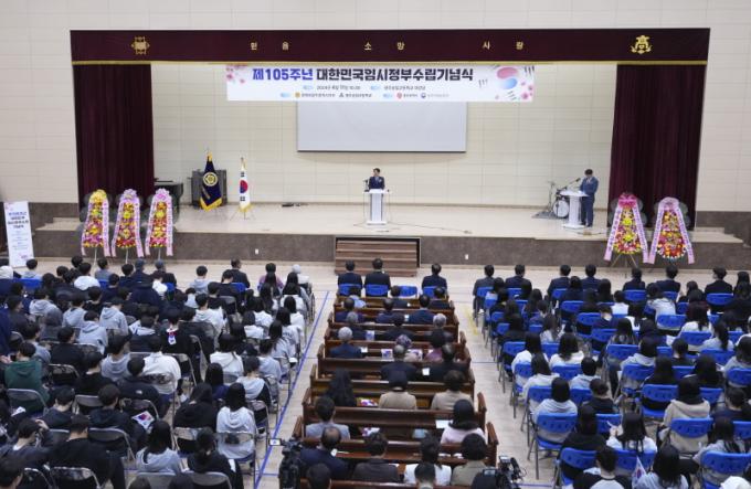 ° ½ÃÀåÀº À̳¯ ºÏ±¸ ¼þÀϰíµîÇб³¿¡¼ ¿¸° Á¦105Áֳ⠴ëÇѹα¹ÀÓ½ÃÁ¤ºÎ¼ö¸³±â³ä½Ä ±â³ä»ç¸¦ ÅëÇØ ¡°105³â ÀüÀÎ 1919³â 4¿ù11ÀÏ ¿À´Ã³¯ ´ëÇѹα¹ ±¹È¸¿Í °°Àº ÀÓ½ÃÁ¤ºÎ ÀÇÁ¤¿øÀÌ ¹®À» ¿¾ú°í, ±¹È£¸¦ ´ëÇѹα¹À¸·Î Á¤ÇßÀ¸¸ç, ÇåÀåÀ» ¸¸µé¾î ±¹¹ÎÀÌ ÀÌ ³ª¶óÀÇ ÁÖÀÎÀÓÀ» ¼±¾ðÇß´Ù¡±¸ç ¡°ÀÓ½ÃÁ¤ºÎ´Â ÀÏÁ¦ÀÇ Áö¹è¿¡ ¸Â¼ µ¶¸³¿îµ¿À» ¹úÀ̰í, ±Ã±ØÀûÀ¸·Î ±ºÁÖÀÇ ³ª¶ó¿¡¼ ±¹¹ÎÀÇ ³ª¶ó·Î ¹Ù²å´Ù¡±°í ¸»Çß´Ù.