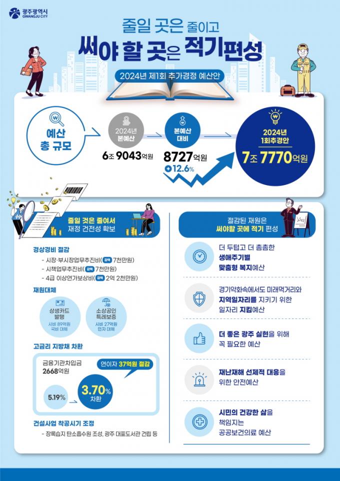 [È£³²´º½º¶óÀÎ = ¼ÀºÈ« ±âÀÚ] ±¤ÁÖ±¤¿ª½Ã(½ÃÀå °±âÁ¤)´Â 2024³âµµ Á¦1ȸ Ãß°¡°æÁ¤¿¹»ê¾È 8727¾ï¿øÀ» Æí¼ºÇØ 18ÀÏ ±¤ÁÖ±¤¿ª½ÃÀÇȸ¿¡ Á¦ÃâÇß´Ù.