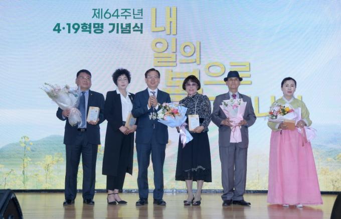 ¶Ç 4¡¤19Çõ¸í Á¤½Å°è½Â À¯°øÀÚ·Î ¼±Á¤µÈ ±è»óȯ¡¤¹Ú¼øÈñ¡¤¹ÚÀº¿µ¡¤À̰í¼ö¡¤ÃÖÀ±Ã¤ ¾¾¿¡ ´ëÇÑ Ç¥Ã¢ÆÐ ¼ö¿©½Ä, ±¤Áֽø³ÇÕâ´ÜÀÇ ¡®³»ÀϷΡ¯ ÇÕâ µîÀÌ ÁøÇàµÆ´Ù.À̳¯ ±â³ä½Ä¿¡ ¾Õ¼ ±¤ÁÖ°ø¿ø 4¡¤19Çõ¸í ±â³äž¿¡¼´Â 4¡¤19Çõ¸í Èñ»ýÀÚ¸¦ À§ÇÑ Âü¹èÇà»ç°¡ ¿·È´Ù.