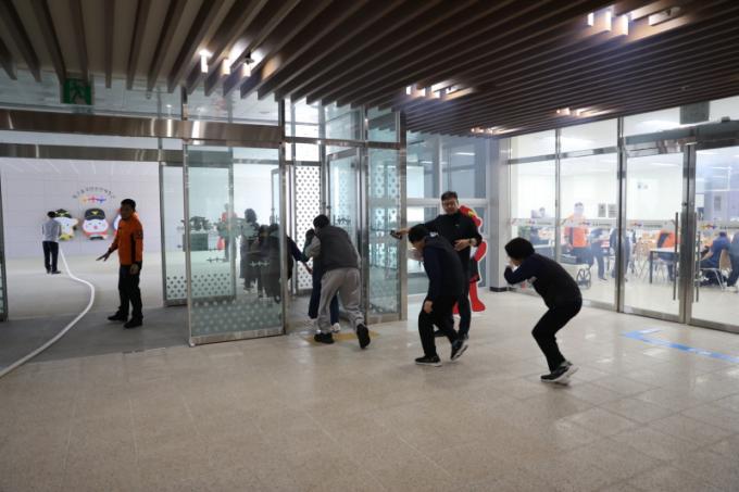 üÇè°ü Àüü Á÷¿øÀÌ Âü¿©ÇÑ À̹ø ÈÆ·ÃÀº ±¸³»½Ä´ç ³»ºÎ¿¡¼ ÈÀç°¡ ¹ß»ýÇÑ »óȲÀ» °¡Á¤ÇÑ ¸ðÀÇÈÆ·ÃÀ¸·Î ÁøÇàµÆ´Ù.