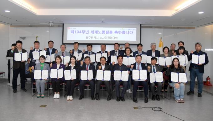 ±¤ÁÖ±¤¿ª½Ã(½ÃÀå °±âÁ¤)´Â 25ÀÏ ½Ãû ¼ÒȸÀǽǿ¡¼ ¡®2024³â Á¦1Â÷ ³ë»ç¹ÎÁ¤ÇùÀÇȸ¡¯¸¦ ¿°í ¡®ÀÏÇÏ´Â ¸ðµç »ç¶÷ÀÇ µµ½Ã, ±¤ÁÖ ½ÇÇö¡¯À» À§ÇÑ ³ë»ç¹ÎÁ¤ °øµ¿ ¼±¾ðÀ» Çß´Ù.