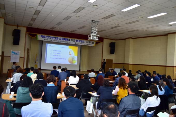 ±è½Ã¶ó ±¤ÁÖ³ó¾÷±â¼ú¼¾ÅÍ ¼ÒÀåÀº ¡°¿ì¸®³ª¶ó ÁÖ¿ä ½Ä·®ÀÛ¹°ÀÎ ¸Æ·ùÀÇ ¾ÈÁ¤»ý»ê°ú ¼ÒºñÈ®´ë ¹æ¾È¿¡ ´ëÇÑ ½Éµµ ÀÖ´Â Åä·ÐÀ̾ú´Ù¡±¸ç ¡°±¹°¡Àû ÇØ°á°úÁ¦ÀÎ ½Ä·®ÀÚ±Þ·ü Çâ»óÀº ¹°·Ð ±¹³» ¸Æ·ù»ê¾÷ÀÇ À§±â¸¦ ±âȸ·Î Ȱ¿ëÇÒ ¼ö ÀÖ´Â ¼ÒÁßÇÑ °è±â°¡ µÇ±æ ±â´ëÇÑ´Ù¡±°í ¸»Çß´Ù.