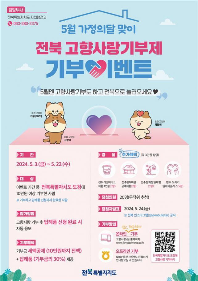 [È£³²´º½º¶óÀÎ = ¼ÀºÈ« ±âÀÚ] ÀüºÏÀÚÄ¡µµ°¡ 5¿ù °¡Á¤ÀÇ´ÞÀ» ¸Â¾Æ °íÇâ»ç¶û±âºÎÁ¦¸¦ µ¶·ÁÇϱâ À§ÇØ ±âºÎ À̺¥Æ®¸¦ ½Ç½ÃÇÑ´Ù.