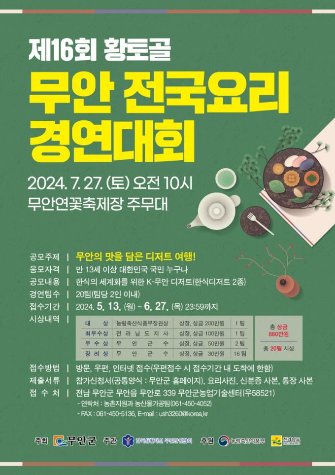 [È£³²´º½º¶óÀÎ = ¼ÀºÈ« ±âÀÚ] ¹«¾È±º(±º¼ö ±è»ê)Àº Á¦27ȸ ¹«¾È¿¬²ÉÃàÁ¦ ±â°£ Áß °³ÃÖÇÏ´Â ¡®Á¦16ȸ ȲÅä°ñ ¹«¾È Àü±¹¿ä¸® °æ¿¬´ëȸ¡¯Âü°¡ÀÚ¸¦ 6¿ù 27ÀϱîÁö ¸ðÁýÇÑ´Ù.