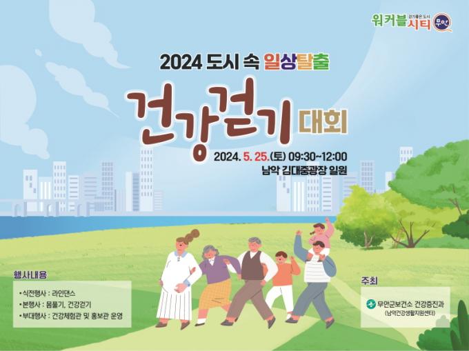 À̹ø Çà»ç´Â ¡®°È±âÁÁÀº µµ½Ã! ¿öÄ¿ºí½ÃƼ ¹«¾È¡¯Á¶¼º¿¡ ¹ß¸ÂÃç ÀÏ»ó ¼Ó °È±â¸¦ »ýȰÈÇÏ°í °Ç°Á¤º¸¸¦ ÅëÇØ ÁֹεéÀÇ °Ç°ÁõÁøÀ» À§ÇØ ¸¶·ÃµÇ¾ú°í ¹«¾È±º°ú º¸°Ç¼Ò¿¡¼ ¿î¿µÇÏ´Â °È±âµ¿¾Æ¸® 16°³ÆÀ°ú ³²¾Ç °Ç°ÁöµµÀÚ°¡ Âü°¡Çϸç ÁֹΠ´©±¸³ª Âü¿©ÇÒ ¼ö ÀÖ´Ù.