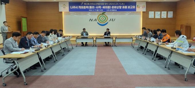 ³ªÁÖ½Ã(½ÃÀå À±º´ÅÂ)´Â 17ÀÏ ½Ãû»ç ´ëȸÀǽǿ¡¼ Á¦53ȸ Àü±¹¼Ò³âüÀü ºÎ¼º° Áغñ»óȲ ÃÖÁ¾ º¸°íȸ¸¦ °¡Á³´Ù°í ¹àÇû´Ù.
