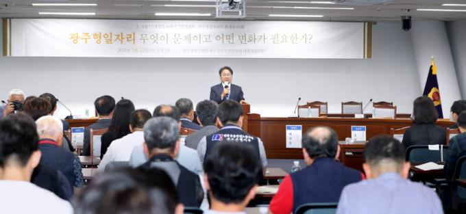 ±¤ÁÖ±¤¿ª½Ã(½ÃÀå °±âÁ¤)´Â 22ÀÏ ±¤ÁÖ½ÃÀÇȸ ¿¹»ê°á»êƯº°À§¿øÈ¸ ´ëȸÀǽǿ¡¼ ¡®±¤ÁÖÇüÀÏÀÚ¸® ¹«¾ùÀÌ ¹®Á¦À̰í, ¾î¶² º¯È°¡ ÇÊ¿äÇѰ¡?¡¯¸¦ ÁÖÁ¦·Î ¡®±¤ÁÖÇüÀÏÀÚ¸® ¹ßÀü¹æÇâ ¸ð»ö Åä·Ðȸ¡¯¸¦ °³ÃÖÇß´Ù.