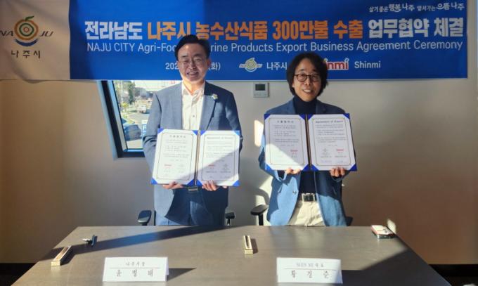| ³ªÁÖ½Ã, È£ÁÖ ½Ãµå´Ï ÇöÁö À¯Åë¾÷üÀÎ ¡®½Å¹Ì¡¯¿Í 2³â°£ 300¸¸ºÒ ±Ô¸ð ³ªÁÖ ³ó¼ö»ê½Äǰ ¼öÃâÇù¾à |