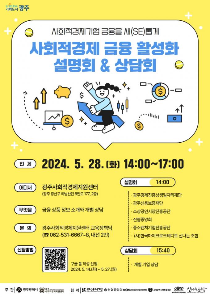 ±¤ÁÖÁö¿ª »çȸÀû°æÁ¦±â¾÷À» ´ë»óÀ¸·Î ÀÌÂ÷º¸ÀüÁö¿ø»ç¾÷À» ºñ·ÔÇÑ »çȸÀû°æÁ¦±â¾÷ Ư·Êº¸Áõ, Áß¼Ò±â¾÷ Á¤Ã¥ÀÚ±Ý, ¼Ò»ó°øÀÎ Á¤Ã¥ÀÚ±Ý, °æ¿µ¾ÈÁ¤ÀÚ±Ý, ±¸Á¶°íµµÈ ÀÚ±Ý, ½ÅÇù »ó»ýÇù·Â´ëÃâ, »çȸÀû°æÁ¦±â¾÷ À¶ÀÚ»ç¾÷ µî ´Ù¾çÇÑ Áö¿ø Á¦µµ¿Í ±ÝÀ¶»óǰ¿¡ ´ëÇÑ ¾È³»°¡ ÀÌ·ïÁú ¿¹Á¤ÀÌ´Ù.