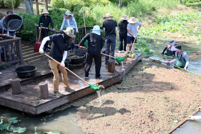 ¶ÇÇÑ 29ÀÏ¿¡´Â °ü±¤°ú ¼Ò¼Ó Àü Á÷¿ø 50¿© ¸íÀ» ÀÏÁ¦ ÀÛ¾÷¿¡ ÅõÀÔÇÏ¿© 5°³ ±¸¿ª¿¡¼ ¾à 20ÅæÀ» Á¦°ÅÇÔÀ¸·Î½á °¡½ÃÀûÀÎ ÀÛ¾÷ ¼º°ú¸¦ °ÅµÎ¾ú´Ù. ÀÚ¿¬ ±×´ë·ÎÀÇ »ýŸ¦ °£Á÷ÇÑ ¹é·ÃÁö¿¡´Â ÈÇÐÀû ¹æÁ¦°¡ ¾î·Á¿ö Á÷Á¢ ¶ã並 µé°í °È¾î³»´Â ¼öÀÛ¾÷ÀÌ ÇÊ¿äÇØ ¸¹Àº ÀηÂÀÌ ¼Ò¿äµÇ¾ú´Ù.