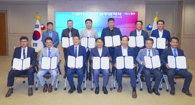 ±¤ÁÖ±¤¿ª½Ã(½ÃÀå °±âÁ¤)´Â 30ÀÏ ½Ãû ºñÁî´Ï½º·ë¿¡¼ Áß¼Ò¡¤Áß°ß±â¾÷ 12°³»ç, Çѱ¹¿¡³ÊÁö°ø´Ü°ú ¡®±¤ÁÖ 2045 ź¼ÒÁ߸³À» À§ÇÑ ±â¾÷ź¼Ò¾×¼Ç ¾÷¹«Çù¾à¡¯À» ü°áÇß´Ù.