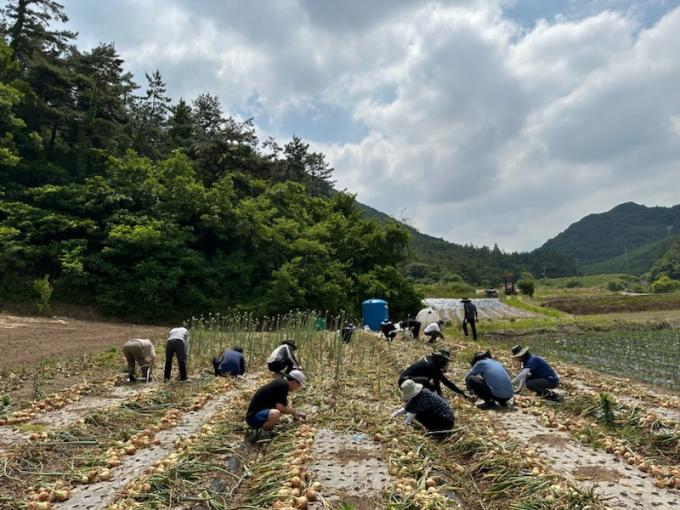 À̳¯ ³óÃÌÀϼյ½±â¿¡ Âü¿©ÇÑ Ãà»ê½Äǰ°úÀåÀ» ºñ·ÔÇÑ Á÷¿ø 14¸íÀº ÀηÂÀÌ ºÎÁ·ÇÑ ³ó°¡¿¡ µµ¿òÀÌ µÇ°íÀÚ ´õ¿î ³¯¾¾¿¡µµ ºÒ±¸ÇÏ°í ¾çÆÄ ¼öÈ® ÀÛ¾÷À» µµ¿ì¸ç ±¸½½¶¡À» Èê·È´Ù.