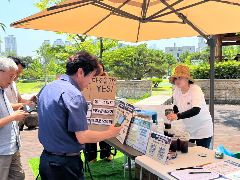 ÀüºÏÀÚÄ¡µµ´Â ÀüÁÖ ½Å½Ã°¡Áö¿¡¼ µµ¹Î 300¿© ¸í¿¡°Ô ´Ùȸ¿ëÄÅ ¼øÈ¯ ½Ã½ºÅÛ¿¡ Âü¿©ÇÏ´Â ¾÷¼ÒµéÀ» ¾È³»ÇÔ°ú µ¿½Ã¿¡ ´Ùȸ¿ëÄÅ »ç¿ë ¾ÛÀ» ¼³Ä¡ÇÏ¸é ´Ùȸ¿ëÄÅ º¸Áõ±Ý 1õ¿øÀ¸·Î À½·á¸¦ Á¦°øÇϰí, ¹«Àιݳ³±â¿¡ ¹Ý³³Çϸé À½·áÄíÆùÀ» Á¦°øÇÏ´Â À̺¥Æ®¸¦ ÁøÇàÇØ ´Ùȸ¿ëÄÅ »ç¿ë ¹× ¹Ý³³¹æ¹ýÀ» È«º¸Çß´Ù.