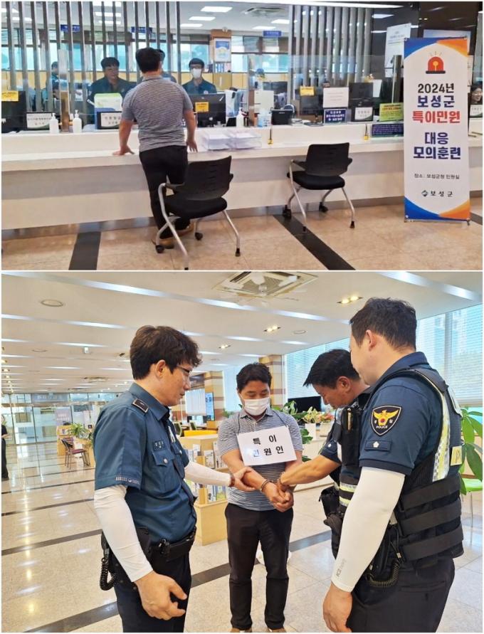 À̹ø ÈÆ·ÃÀº Æø¾ð․ÆøÇà µî ¹Î¿ø½Ç ³» ƯÀ̹οø¿¡ ´ëºñÇÏ°í ºñ»ó »óȲ ¹ß»ý ½Ã ´ëÀÀ´É·ÂÀ» Çâ»óÇϰíÀÚ ¹Î¿ø ´ã´ç °ø¹«¿øµéÀÇ ¿ªÇÒÀ» »çÀü¿¡ ºÎ¿©ÇØ º¸¼º°æÂû¼¿Í ÇÕµ¿À¸·Î ÁøÇàÇß´Ù.