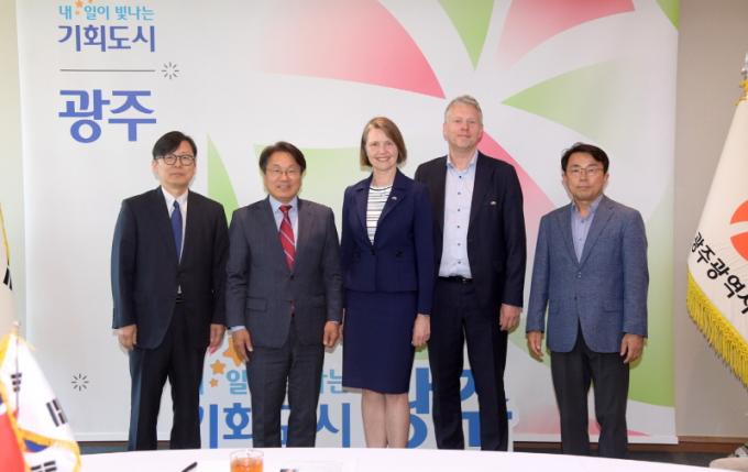 [È£³²´º½º¶óÀÎ = ¼ÀºÈ« ±âÀÚ] °±âÁ¤ ±¤ÁÖ±¤¿ª½ÃÀåÀº 18ÀÏ ½Ãû Á¢°ß½Ç¿¡¼ ¾È³× Ä«¸® ÇѼ¾ ¿Àºó(Anne Kari Hansen Ovind) ÁÖÇѳ븣¿þÀÌ´ë»ç¸¦ Á¢°ß, ź¼ÒÁ߸³µµ½Ã¿Í ģȯ°æ Á¤Ã¥ µî¿¡ ´ëÇØ ³íÀÇÇß´Ù.