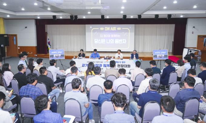 °±âÁ¤ ½ÃÀåÀº À̳¯ ÇöÀå´ëÈ¿¡ ¾Õ¼ ±¤ÁÖÅ×Å©³ëÆÄÅ© »ç¹«½ÇÀ» Á÷Á¢ ¹æ¹®, Áö¿ª»ê¾÷ ¹ßÀü ¹× ±â¾÷ ¼ºÀå¿¡ ¾Ö¾²´Â Á÷¿øµéÀ» °Ý·ÁÇß´Ù. ° ½ÃÀåÀº ¶Ç Á÷¿øµé°ú â¾÷ Á¤Ã¥, µµ½ÉÇ×°ø±³Åë(UAM) µî ¹Ì·¡¸ðºô¸®Æ¼ µî ±¤ÁÖ »ê¾÷Á¤Ã¥¿¡ ´ëÇØ ³íÀÇÇß´Ù.