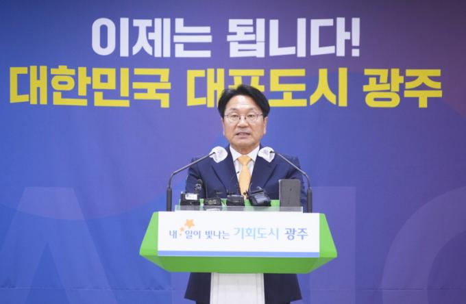 [È£³²´º½º¶óÀÎ = ¼ÀºÈ« ±âÀÚ] °±âÁ¤ ±¤ÁÖ±¤¿ª½ÃÀåÀº 25ÀÏ ¡°Áö³ 2³â ¹Î¼±8±â ÃÖ°íÀÇ ¼º°ú´Â ½Ã¹Î°ú °øÁ÷ÀÚµéÀÌ ¡®ÀÌÁ¦´Â µÈ´Ù¡¯´Â º¯ÈÀÇ Èñ¸ÁÀ» º¸¾Ò´Ù´Â °Í¡±À̶ó¸ç ¡°ÀÏÀÚ¸® ±âȸ, ´©¸®´Â ±âȸ, ´õ »ì±âÁÁÀº ±âȸ·Î »õ·Î¿î ±¤Áֽôë, 2030 ´ëÇѹα¹ ´ëÇ¥µµ½Ã·Î °¡´Â Áغñ¸¦ ¸¶ÃÆ´Ù¡±°í ÀÚÆòÇß´Ù.